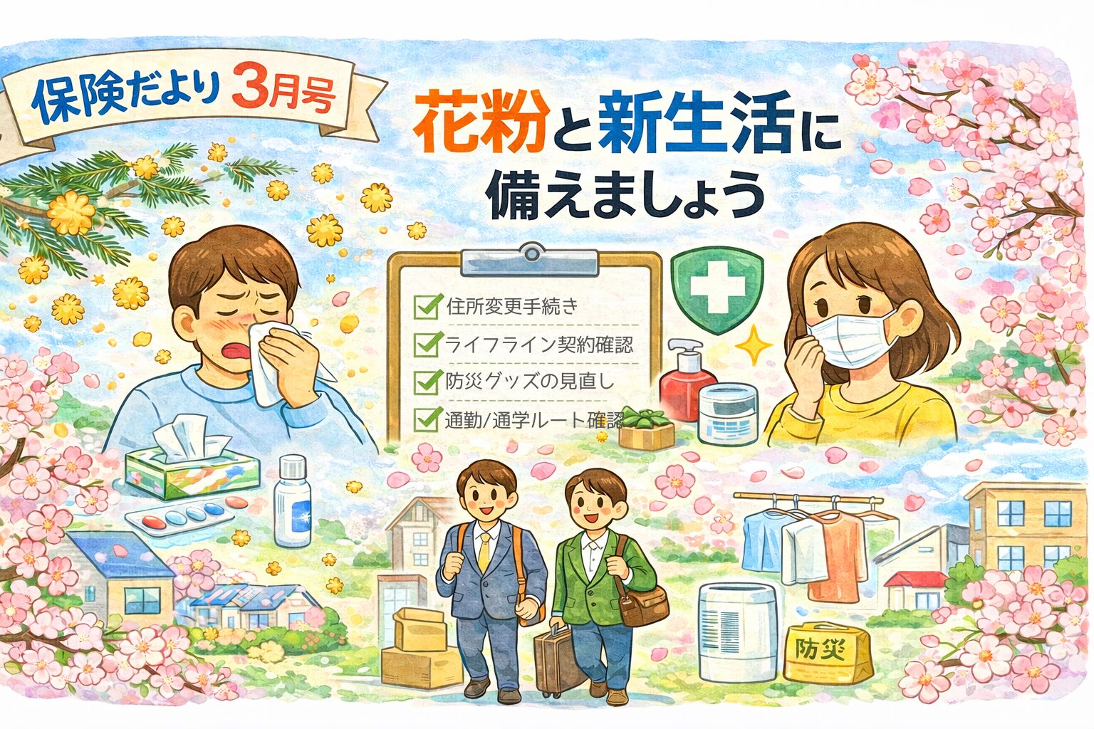 今月は「花粉症対策」と「新生活に向けた準備」のポイントをお届けします。